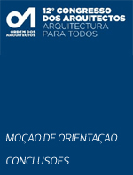 A Moção de Orientação Global submetida ao 12º Congresso dos Arquitectos está disponível em www.arquitectos.pt As Conclusões do 12º Congresso dos Arquitectos, que integram os relatos das oito sessões sectoriais, foram votadas por maioria absoluta registando-se uma abstenção.