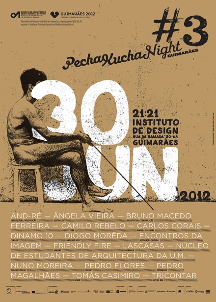O Núcleo de Arquitectos da Região de Braga, NARB, em parceria com Guimarães 2012 Capital Europeia da Cultura e o projecto "Pop Up Culture" organizam a PechaKucha Night Guimarães #03, com coordenação dos arquitectos José Martins e João Rosmaninho DS, que terá lugar no Instituto de Design (Rua da Ramada, n.º 52 a 68), Guimarães, no dia 30 de Junho, Sábado, às 21h21.