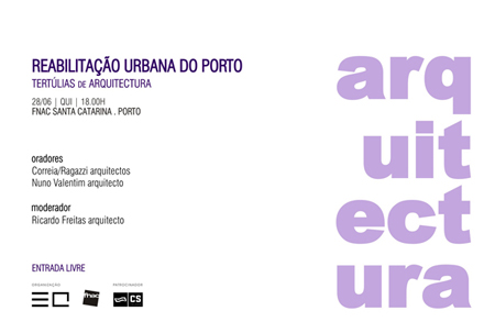 O portal Espaço de Arquitectura em parceria com a Fnac, promove a iniciativa Tertúlias de Arquitectura. O encontro dedicado ao tema ' Reabilitação Urbana do Porto' decorre no dia 28 de Junho, às 18h00, na Fnac de Santa Catarina, no Porto.