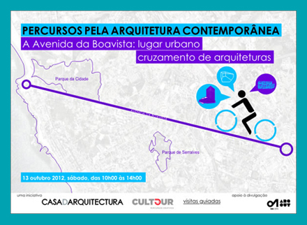 Esta visita guiada será realizada a partir de um percurso de bicicleta que pretende também aproximar a arquitectura dos cidadãos comuns. "A Avenida da Boavista (1854) cumpre o objectivo de ligação da cidade com o mar. Esta ligação é o suporte de algumas das mais singulares obras arquitectónicas do século XX: Arménio Losa, Álvaro Siza, Souto de Moura, Rem Koolhaas e Sidónio Pardal, são alguns dos arquitectos que iremos encontrar. O geógrafo Álvaro Domingues, acompanhado pela arquitecta Clara Vale, ajudará à leitura e à compreensão do percurso. Através desta visita abre-se a possibilidade de explorar o tema da regeneração urbana acentuando o papel da mobilidade sustentável na cidade; proporcionar ao cidadão comum uma aproximação do entendimento do organismo urbano; e fomentar a utilização da bicicleta como modo de locomoção sustentável".
