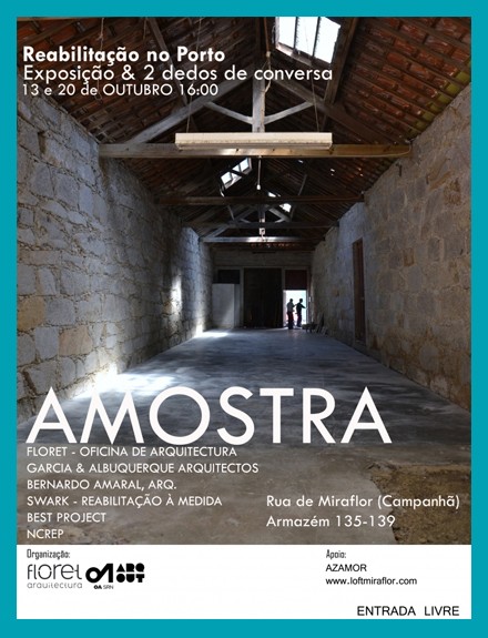 A Floret – Oficina de Arquitectura organiza a iniciativa 'Amostra – Reabilitação no Porto: Exposição e Dois Dedos de Conversa' a decorrer nos dias 13 e 20 de Outubro, das 16h00 às 20h00, nos Armazéns 129-133, Rua de Miraflor (Campanhã).