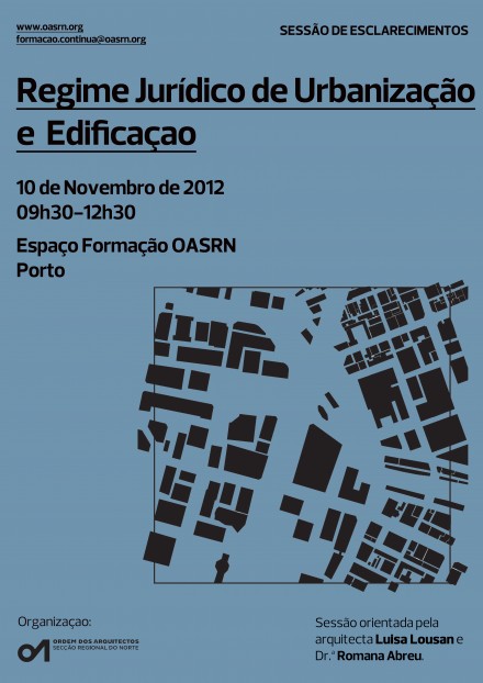 A Sessão, orientada pela arquitecta Luisa Lousan e Dr.ª Romana Abreu, decorre no dia 10 de Novembro, das 9h30 às 12h30, no espaço de formação da OASRN.