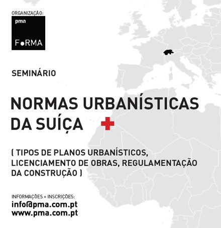 A PMA – Paula Morais & Associados - Consultoria Urbanística, Lda, organiza o Seminário 'Normas Urbanísticas da Suíça', com a duração de 3 horas, 15h00 – 18h00, em dia a definir, nas instalações da PMA, no Porto.