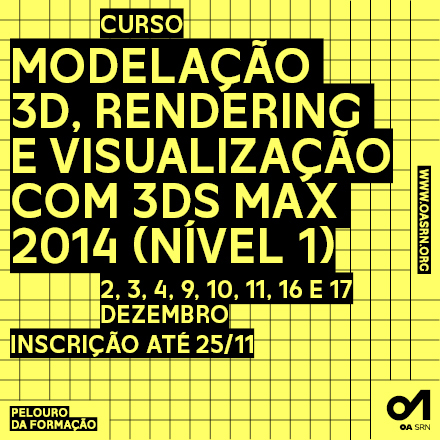 A Secção Regional Norte da Ordem dos Arquitectos  (OASRN) promove o  Curso   Modelação 3D, rendering e visualização com 3DS Max 2014 (nível  1) que   tem como principal objectivo dotar os formandos com ferramentas  para a   representação tridimensional da arquitectura, com o recurso a    ferramentas avançadas de modelação, aplicação de materiais e  iluminação,   atingindo o nível de aprendizagem suficiente para a  concretização de   imagens e vídeos foto-realistas.