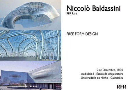 A Escola de Arquitectura da Universidade do Minho, UM, no âmbito do seu Programa Doutoral em Arquitectura e inserido no programa da unidade curricular 'Seminário de Conhecimento Avançado', coordenada pelo Prof. Paulo Cruz, organiza a palestra "Free Form Design", com Niccolò Baldassini, a 2 de Dezembro, 5ª feira, 18h30, no Auditório 1 da EAUM, Universidade do Minho, Campus de Azurém, em Guimarães.