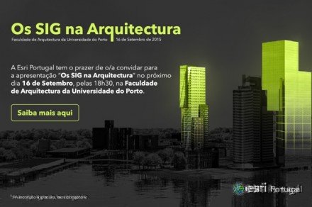 16 de Setembro | 18h30 | Faculdade de Arquitectura da Universidade do Porto - A Esri Portugal tem o prazer de o/a convidar para a apresentação “Os SIG na Arquitectura” no próximo dia 16 de Setembro, pelas 18h30, na Faculdade de Arquitectura da Universidade do Porto. A Esri Portugal é a distribuidora nacional da tecnologia ArcGIS da Esri, líder mundial no desenvolvimento e implementação de Sistemas de Informação Geográfica (SIG).