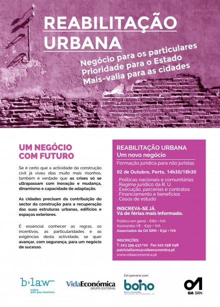 Público em geral - €80 + IVA | Assinantes VE - €50 + IVA | Associados da OA SRN - €50 + IVA