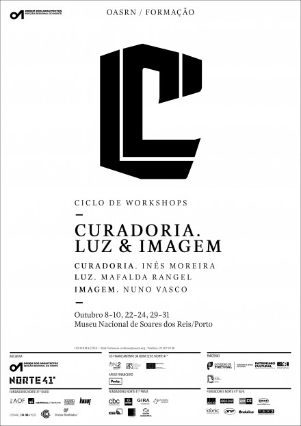Outubro 8 a 10 / 22 a 24 / 29 a 31 | Museu Nacional Soares dos Reis | Porto | Data limite das inscrições 02 de Outubro - Curadoria. Inês Moreira; Imagem. Nuno Vasco; Luz. Mafalda Rangel. A iniciativa tem como objectivo o desenvolvimento do Ciclo de workshops organizado nas temáticas de Curadoria, Imagem e Luz, englobado no Projecto Norte 41º que se constitui como um centro de Arquitectura Criatividade e Sustentabilidade, com a missão de promover projectos de investigação, formação, divulgação e debate sobre temas emergentes na prática profissional do arquitecto.
