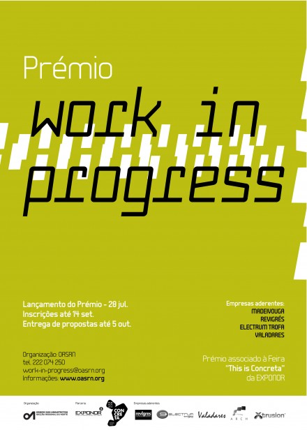 O Prémio "Work in Progress " pretende criar uma dinâmica atractiva entre arquitectos e empresas de materiais de construção, constituindo-se como um desafio para ambas as partes, tendo em conta a concepção de um módulo de 2x2m e a respectiva construção dos projectos vencedores, promovendo a capacidade criativa do arquitecto e, paralelamente, a divulgação dos próprios materiais de construção das empresas, criando a oportunidade de se lançarem propostas inovadoras neste mercado.