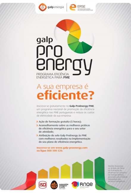 1 de Outubro | 14h ás 19h | Porto - A AdEPorto convida todas as organizações da sua área territorial de actuação a participar no Galp ProEnergy PME, um programa de formação gratuito e de âmbito nacional, que pretende aconselhar as pequenas e médias empresas sobre as melhores práticas na utilização da energia eléctrica. O programa de formação tem a duração de 5 horas, sendo precedido de um diagnóstico inicial que avaliará as práticas de utilização de energia eléctrica de cada uma das empresas. Após a formação, as empresas são convidadas a elaborar um plano de acção de eficiência energética, que implementarão sozinhas, ou com a colaboração das agências de energia e ambiente locais. As PME com melhores resultados na implementação dos planos de eficiência energética serão distinguidas com o selo Galp ProEnergy.