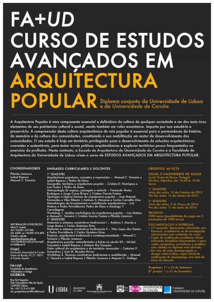 A Arquitectura Popular é uma componente essencial e definidora da cultura de qualquer sociedade e um dos mais ricos elementos do seu património cultural e social, sendo também um valor económico. Importa por isso estudá-la e preservá-la. A compreensão desta cultura arquitectónica de raiz popular é essencial para a permanência da história, da memória e da cultura das comunidades, constituindo a sua reabilitação um motor de desenvolvimento das comunidades. O seu estudo é hoje um território privilegiado para o desenvolvimento de soluções arquitectónicas coerentes e sustentáveis, para testar novas práticas arquitectónicas e explorar territórios pouco frequentados no exercício da profissão. Neste contexto, a Escuela de Arquitectura de la Universidade da Coruña e a Faculdade de Arquitectura da Universidad de Lisboa criam o Curso de estudos avançados em arquitectura popular. O curso conta com o apoio da Câmara Municipal de Ponte da Barca, município emblemático para os estudiosos do património da arquitectura popular.