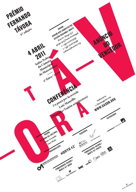 O Prémio Fernando Távora é organizado pela OASRN em parceria com a Câmara Municipal de Matosinhos, CMM, e Associação Casa da Arquitectura, ACA, com o patrocínio da AXA.