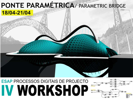 O IV Workshop Processos Digitais de Projecto, que decorre no âmbito do seminário "Métodos Formais e Semi-formais em Arquitectura", é dedicado ao tema 'Ponte Paramétrica' e pretende repensar uma nova travessia fluvial pedonal na zona ribeirinha da cidade do Porto. A formação explorará o uso de processos de modelação paramétrica com Rhinoceros e Grasshopper e fabrico digital na concepção de uma solução arquitectónica de uma ponte pedonal.