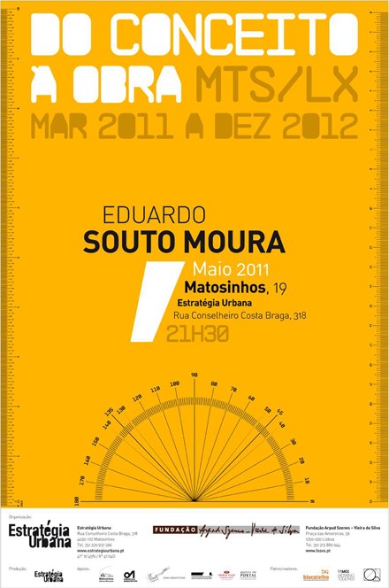O Arquitecto Eduardo Souto de Moura é o convidado da próxima conferência do ciclo "Do Conceito à Obra" (ver mensageiro #428), a decorrer no dia 19 de Maio, 5ª feira, às 21h30, no auditório da Estratégia Urbana, Rua Conselheiro Costa Braga 318, em Matosinhos, cuja introdução será realizada pelo arquitecto espanhol Rafael Moneo.