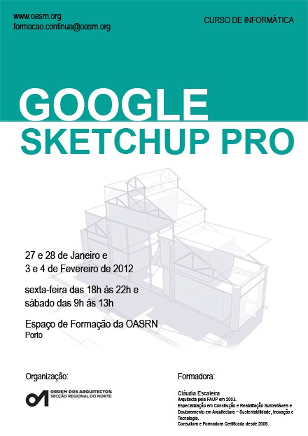A acção de formação pretende fornecer conhecimentos sobre Google Sketchup (nas suas duas versões) que potenciem a sua utilização como ferramenta de projecto acessível e é orientada por Cláudia Escaleira.