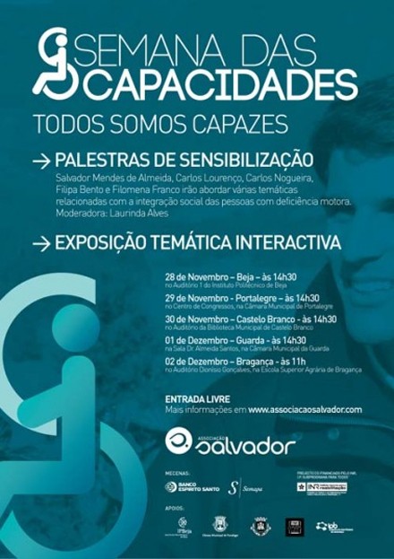 A Associação Salvador, no âmbito do Dia Internacional da Pessoa com Deficiência que se comemora a 3 de Dezembro, promove até 2 de Dezembro a 'Semana das Capacidades' que irá percorrer diversas cidades do interior do país e tendo como objectivo a sensibilização da população para as capacidades das pessoas com deficiência, contribuindo assim para desmistificar alguns preconceitos face à deficiência motora.