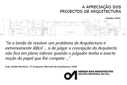 A OASRS organiza a sessão dedicada ao tema da Apreciação de Projectos de Arquitectura a 15 de Outubro, no auditório Nuno Teotónio Pereira, na sede da Ordem dos Arquitectos, em Lisboa.