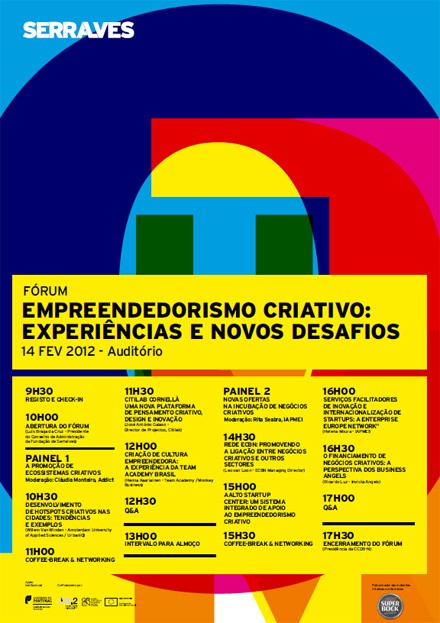 Neste evento, que conta com um painel de oradores nacionais e internacionais de referência como Citilab (Barcelona), Team Academy (Finlândia/ Brasil), Aalto Startup Center (Helsínquia) e Enterprise Europe Network através do IAPMEI, entre outros, vão estar em debate vários aspectos relacionados com Empreendedorismo no Sector das Indústrias Criativas e respectivas tendências de Desenvolvimento. Os temas gerais do programa são 'A promoção de Ecossistemas Criativos' e 'Novas Ofertas na Incubação de Negócios Criativos'.